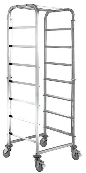 rozsdamentes acélból készült, kosarak szállítására és tárolására.