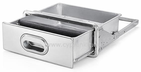 kiemelhető és üríthető tartály, rozsdamentes kivitel